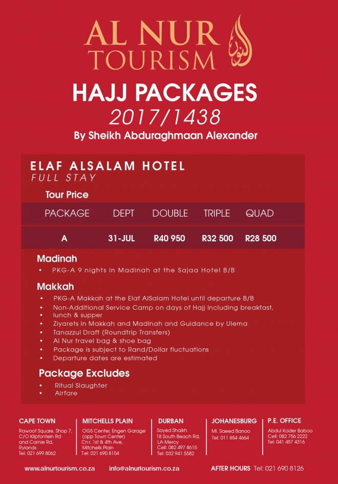 Disclaimer: Kindly check and confirm details with operators before booking. Package Information has been uploaded onto our website as received, and may have changed. Hotel Information has been sourced from websites like Google Maps, Wikimapia and Hotels.com. If any of the information is incorrect, kindly let us know via email: info@hajjumrahinfo.co.za - Shukran