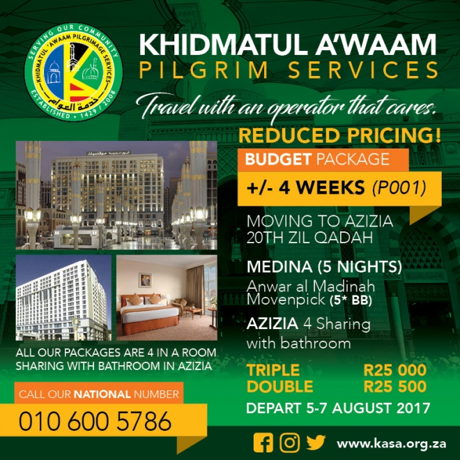 Disclaimer: Kindly check and confirm details with operators before booking. Package Information has been uploaded onto our website as received, and may have changed. Hotel Information has been sourced from websites like Google Maps, Wikimapia and Hotels.com. If any of the information is incorrect, kindly let us know via email: info@hajjumrahinfo.co.za - Shukran