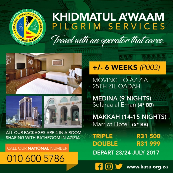 Disclaimer: Kindly check and confirm details with operators before booking. Package Information has been uploaded onto our website as received, and may have changed. Hotel Information has been sourced from websites like Google Maps, Wikimapia and Hotels.com. If any of the information is incorrect, kindly let us know via email: info@hajjumrahinfo.co.za - Shukran