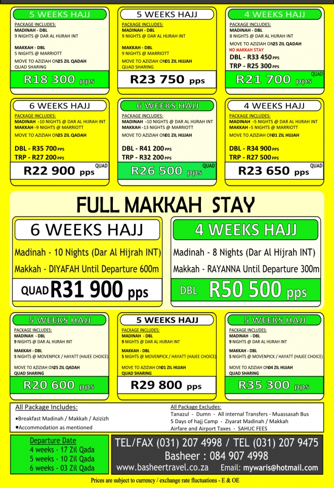 Disclaimer: Kindly check and confirm details with operators before booking. Package Information has been uploaded onto our website as received, and may have changed. Hotel Information has been sourced from websites like Google Maps, Wikimapia and Hotels.com. If any of the information is incorrect, kindly let us know via email: info@hajjumrahinfo.co.za - Shukran