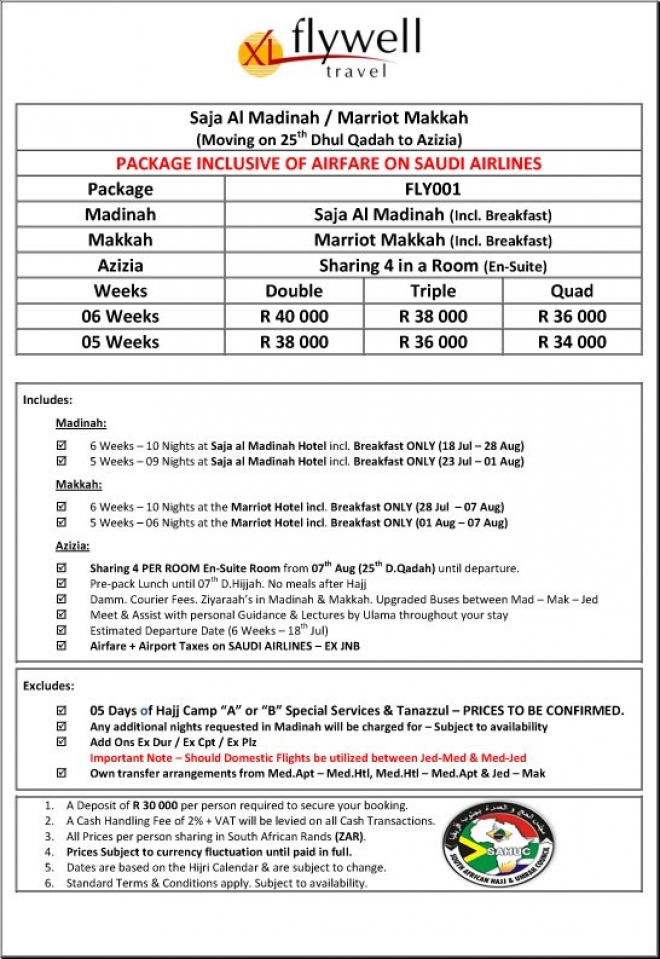Source: http://www.flywell.co.za/hajjpackages/hajj-package-1-~-saja-a-madinah-~-marriot-makkah