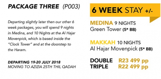 Disclaimer: Kindly check and confirm details with operators before booking. Package Information has been uploaded onto our website as received, and may have changed. Hotel Information has been sourced from websites like Google Maps, Wikimapia and Hotels.com. If any of the information is incorrect, kindly let us know via email: info@hajjumrahinfo.co.za - Shukran