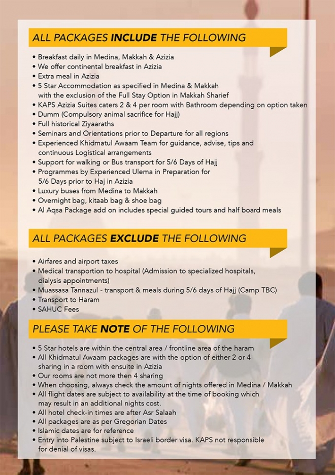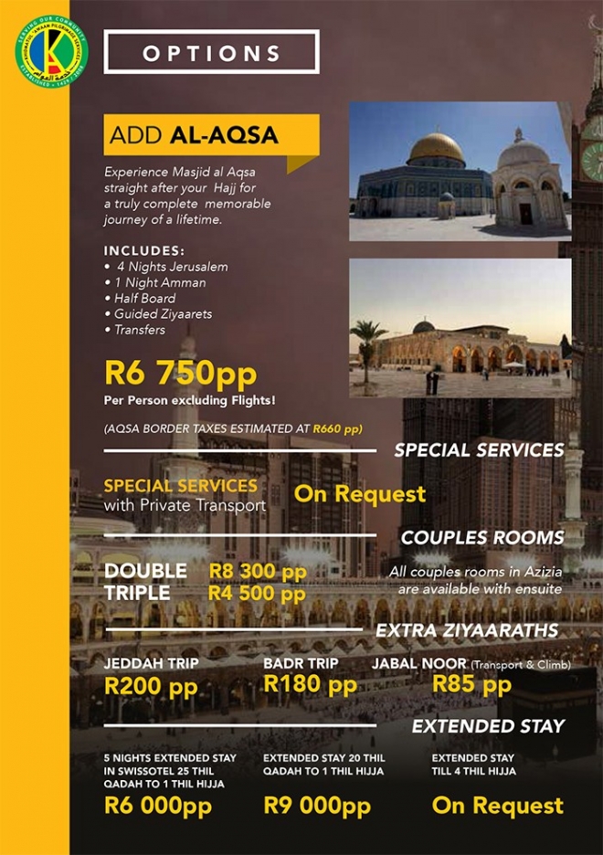 Disclaimer: Kindly check and confirm details with operators before booking. Package Information has been uploaded onto our website as received, and may have changed. Hotel Information has been sourced from websites like Google Maps, Wikimapia and Hotels.com. If any of the information is incorrect, kindly let us know via email: info@hajjumrahinfo.co.za - Shukran
