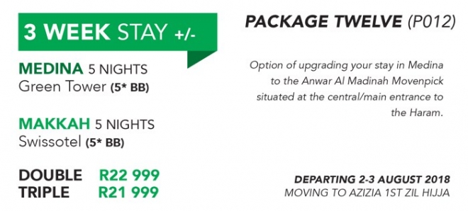 Disclaimer: Kindly check and confirm details with operators before booking. Package Information has been uploaded onto our website as received, and may have changed. Hotel Information has been sourced from websites like Google Maps, Wikimapia and Hotels.com. If any of the information is incorrect, kindly let us know via email: info@hajjumrahinfo.co.za - Shukran