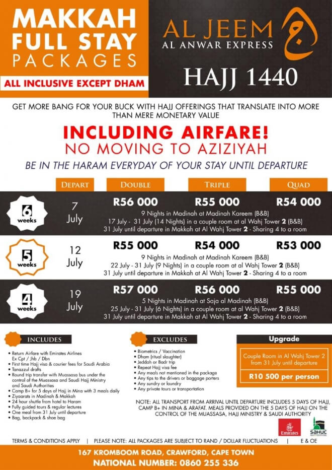 Disclaimer: Kindly check and confirm details with operators before booking. Package Information has been uploaded onto our website as received, and may have changed. Hotel Information has been sourced from websites like Google Maps, Wikimapia and Hotels.com. If any of the information is incorrect, kindly let us know via email: info@hajjumrahinfo.co.za - Shukran