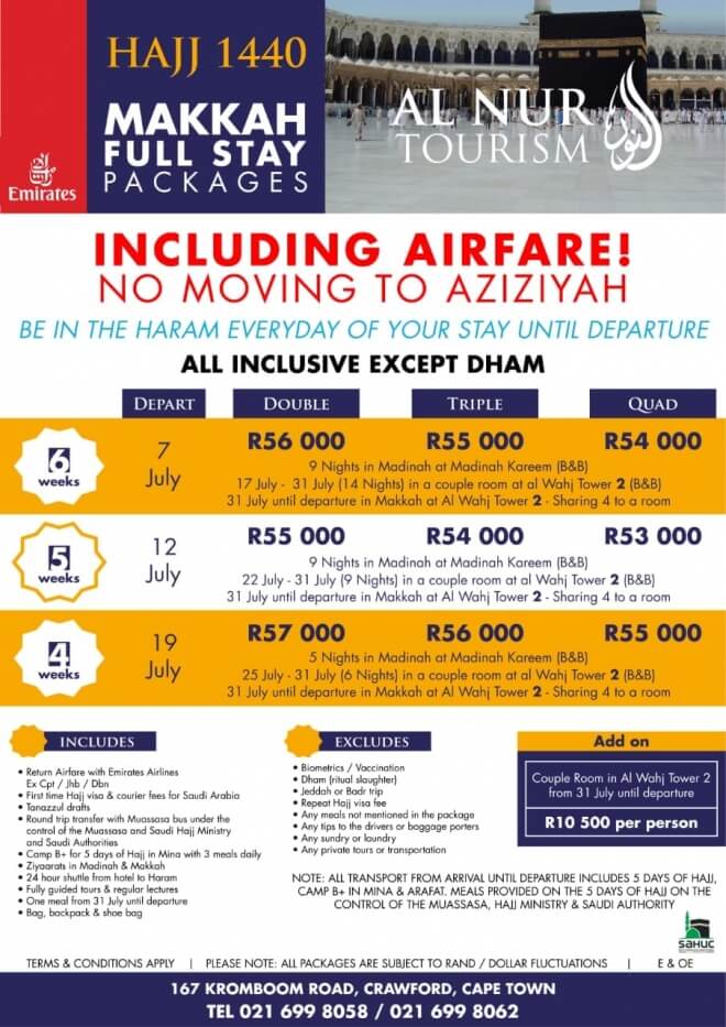 Disclaimer: Kindly check and confirm details with operators before booking. Package Information has been uploaded onto our website as received, and may have changed. Hotel Information has been sourced from websites like Google Maps, Wikimapia and Hotels.com. If any of the information is incorrect, kindly let us know via email: info@hajjumrahinfo.co.za - Shukran
