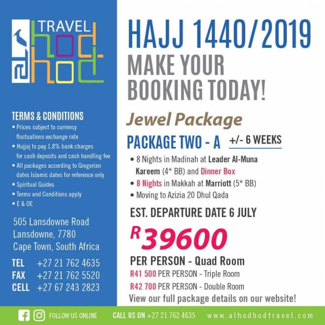 Disclaimer: Kindly check and confirm details with operators before booking. Package Information has been uploaded onto our website as received, and may have changed. Hotel Information has been sourced from websites like Google Maps, Wikimapia and Hotels.com. If any of the information is incorrect, kindly let us know via email: info@hajjumrahinfo.co.za - Shukran