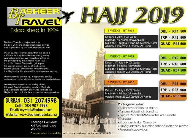 Disclaimer: Kindly check and confirm details with operators before booking. Package Information has been uploaded onto our website as received, and may have changed. Hotel Information has been sourced from websites like Google Maps, Wikimapia and Hotels.com. If any of the information is incorrect, kindly let us know via email: info@hajjumrahinfo.co.za - Shukran