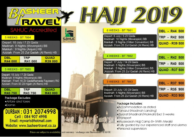 Disclaimer: Kindly check and confirm details with operators before booking. Package Information has been uploaded onto our website as received, and may have changed. Hotel Information has been sourced from websites like Google Maps, Wikimapia and Hotels.com. If any of the information is incorrect, kindly let us know via email: info@hajjumrahinfo.co.za - Shukran
