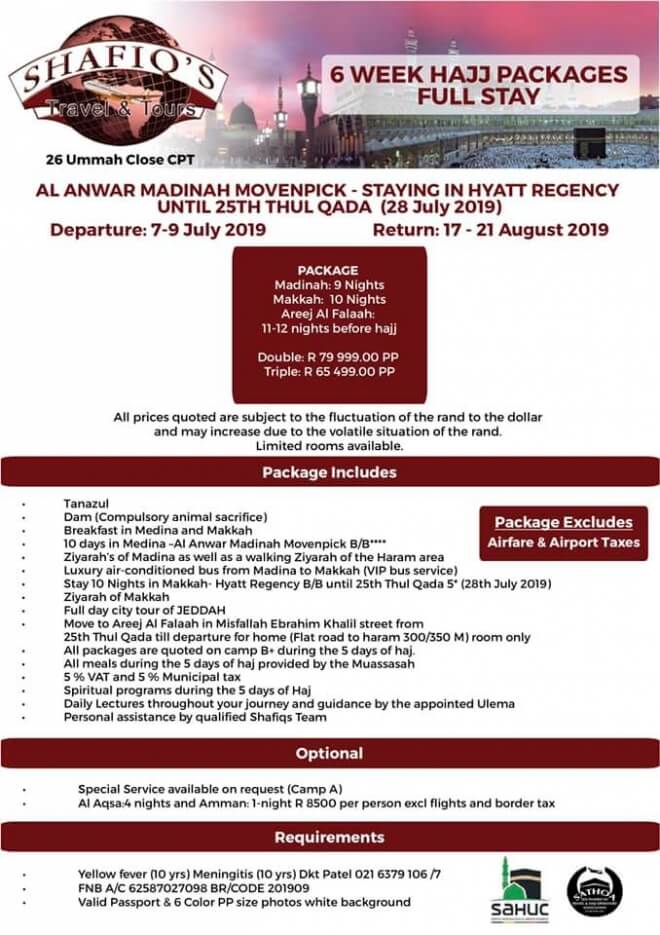 Disclaimer: Kindly check and confirm details with operators before booking. Package Information has been uploaded onto our website as received, and may have changed. Hotel Information has been sourced from websites like Google Maps, Wikimapia and Hotels.com. If any of the information is incorrect, kindly let us know via email: info@hajjumrahinfo.co.za - Shukran