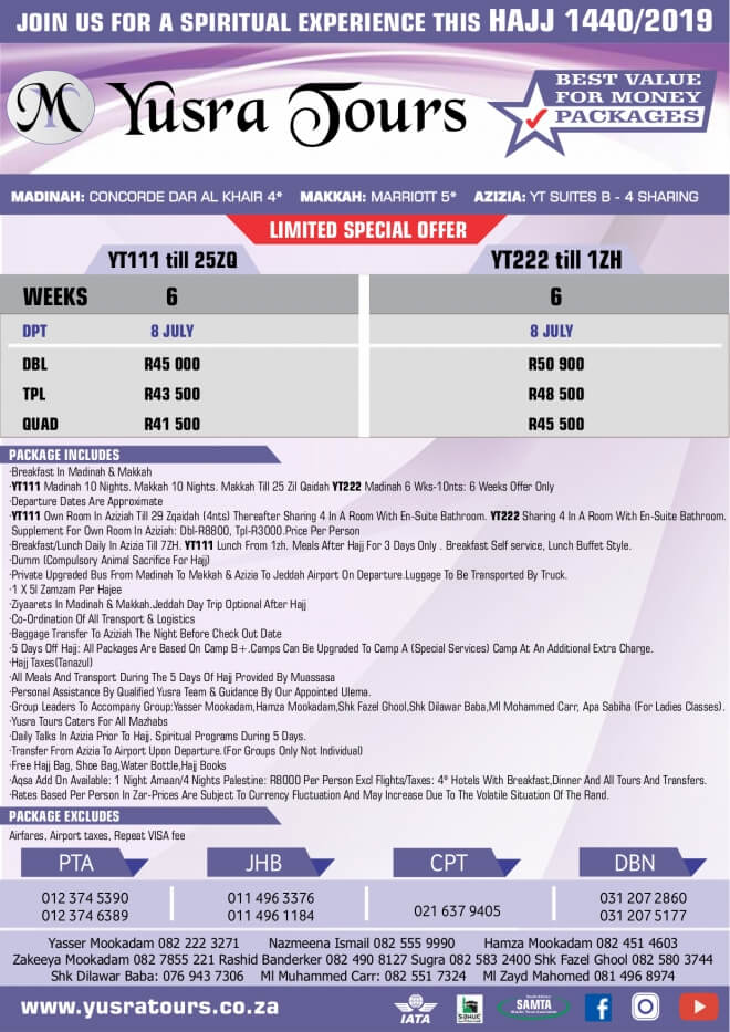 Disclaimer: Kindly check and confirm details with operators before booking. Package Information has been uploaded onto our website as received, and may have changed. Hotel Information has been sourced from websites like Google Maps, Wikimapia and Hotels.com. If any of the information is incorrect, kindly let us know via email: info@hajjumrahinfo.co.za - Shukran