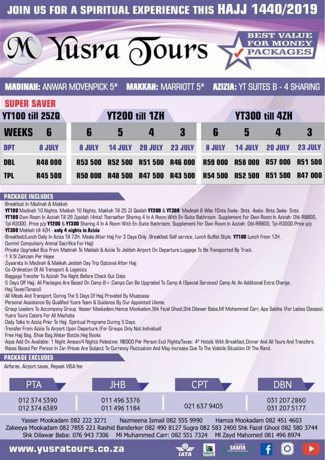 Disclaimer: Kindly check and confirm details with operators before booking. Package Information has been uploaded onto our website as received, and may have changed. Hotel Information has been sourced from websites like Google Maps, Wikimapia and Hotels.com. If any of the information is incorrect, kindly let us know via email: info@hajjumrahinfo.co.za - Shukran