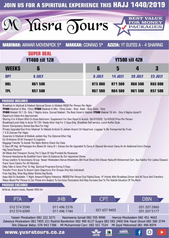 Disclaimer: Kindly check and confirm details with operators before booking. Package Information has been uploaded onto our website as received, and may have changed. Hotel Information has been sourced from websites like Google Maps, Wikimapia and Hotels.com. If any of the information is incorrect, kindly let us know via email: info@hajjumrahinfo.co.za - Shukran