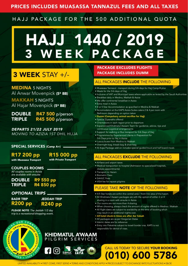 Khidmatul Awaam - 3 Week Package - Al Hajar Movenpick