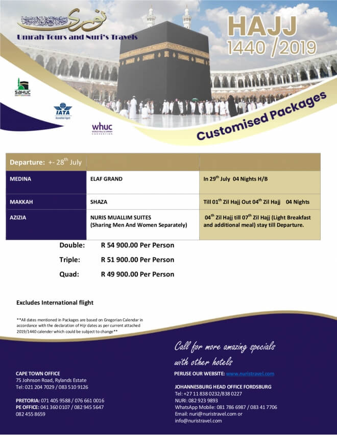Disclaimer: Kindly check and confirm details with operators before booking. Package Information has been uploaded onto our website as received, and may have changed. Hotel Information has been sourced from websites like Google Maps, Wikimapia and Hotels.com. If any of the information is incorrect, kindly let us know via email: info@hajjumrahinfo.co.za - Shukran