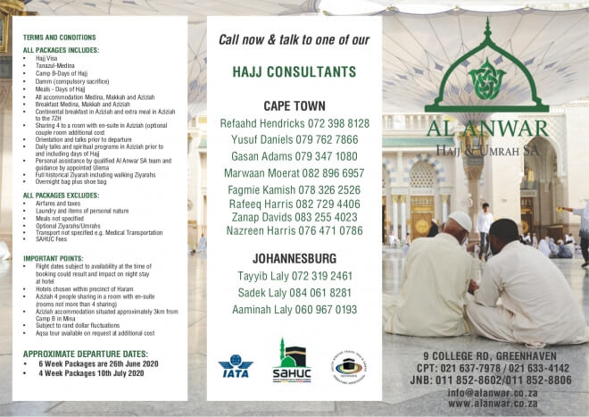 Disclaimer: Kindly check and confirm details with operators before booking. Package Information has been uploaded onto our website as received, and may have changed. Hotel Information has been sourced from websites like Google Maps, Wikimapia and Hotels.com. If any of the information is incorrect, kindly let us know via email: info@hajjumrahinfo.co.za - Shukran