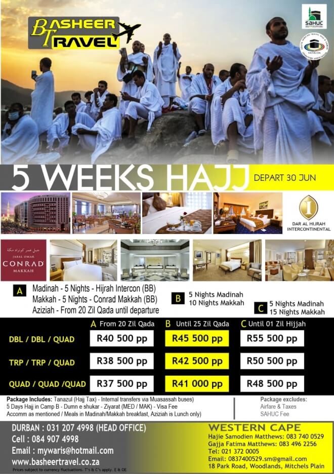 Disclaimer: Kindly check and confirm details with operators before booking. Package Information has been uploaded onto our website as received, and may have changed. Hotel Information has been sourced from websites like Google Maps, Wikimapia and Hotels.com. If any of the information is incorrect, kindly let us know via email: info@hajjumrahinfo.co.za - Shukran