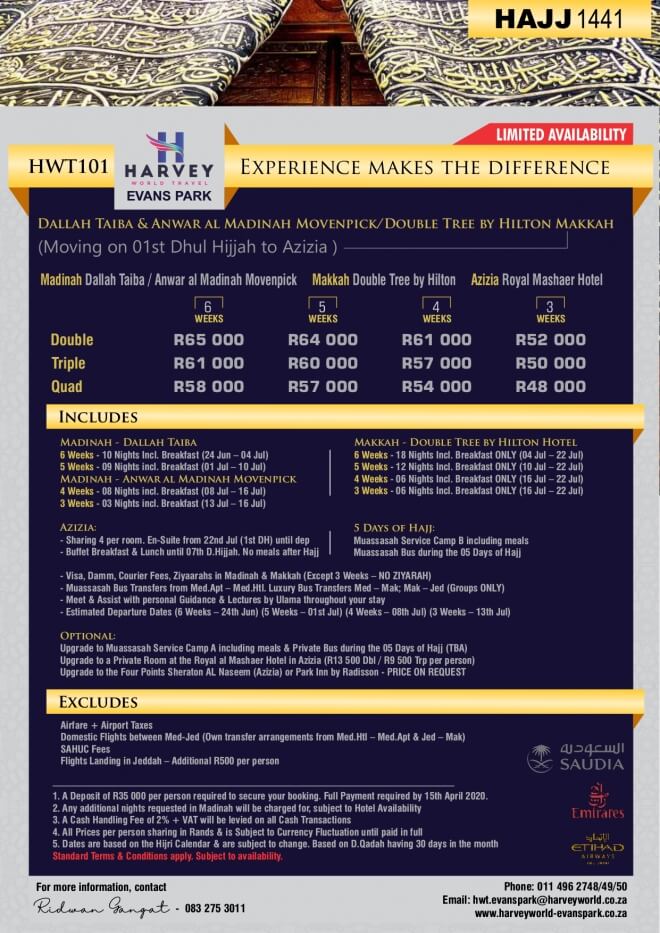 Disclaimer: Kindly check and confirm details with operators before booking. Package Information has been uploaded onto our website as received, and may have changed. Hotel Information has been sourced from websites like Google Maps, Wikimapia and Hotels.com. If any of the information is incorrect, kindly let us know via email: info@hajjumrahinfo.co.za - Shukran