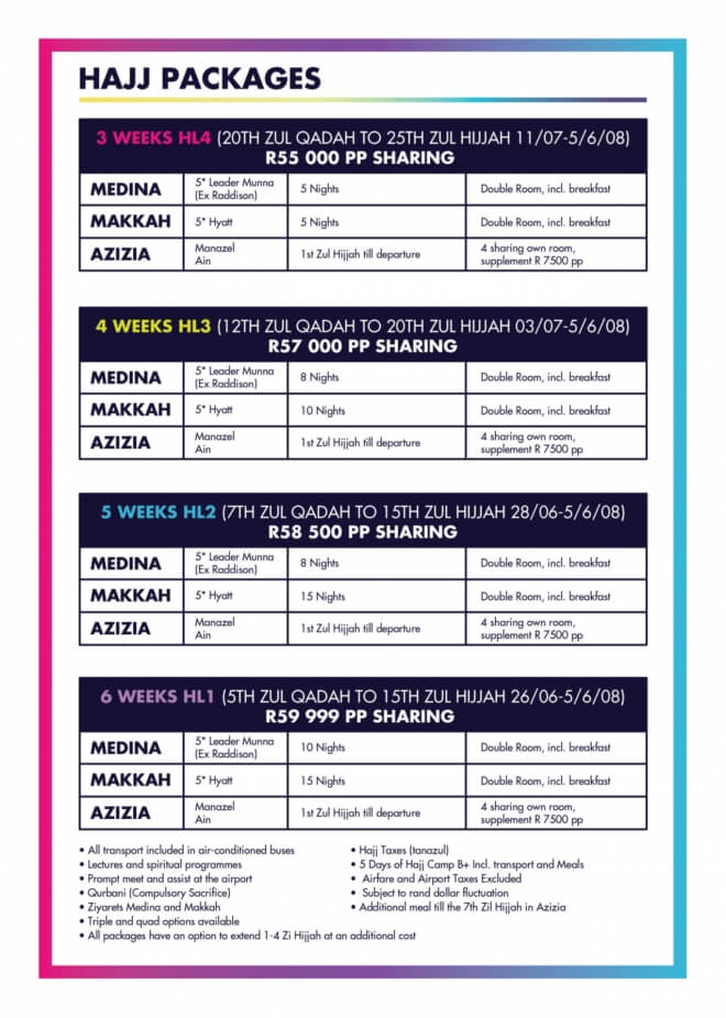 Disclaimer: Kindly check and confirm details with operators before booking. Package Information has been uploaded onto our website as received, and may have changed. Hotel Information has been sourced from websites like Google Maps, Wikimapia and Hotels.com. If any of the information is incorrect, kindly let us know via email: info@hajjumrahinfo.co.za - Shukran