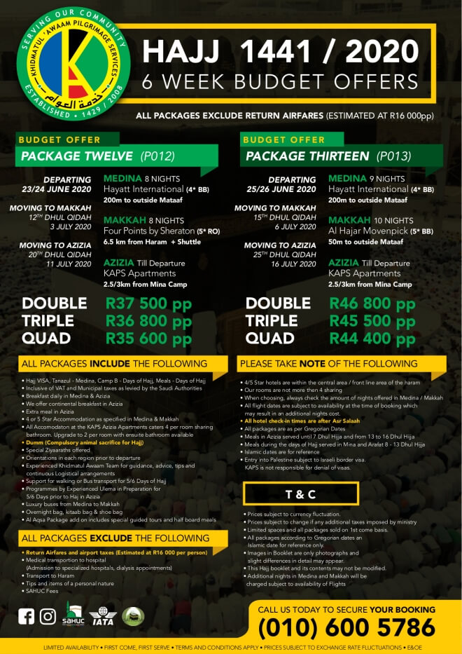 Disclaimer: Kindly check and confirm details with operators before booking. Package Information has been uploaded onto our website as received, and may have changed. Hotel Information has been sourced from websites like Google Maps, Wikimapia and Hotels.com. If any of the information is incorrect, kindly let us know via email: info@hajjumrahinfo.co.za - Shukran