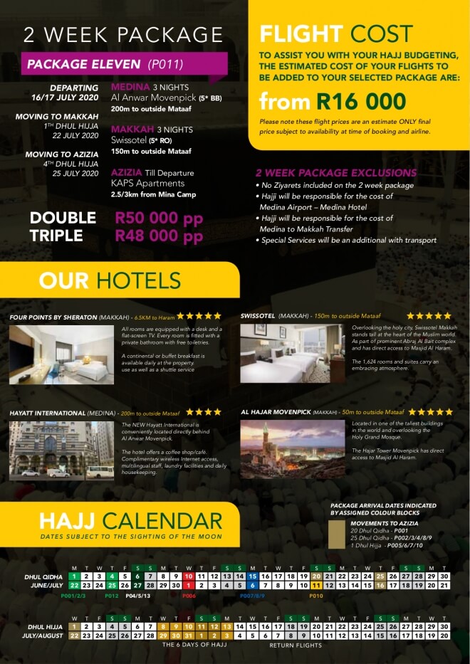 Disclaimer: Kindly check and confirm details with operators before booking. Package Information has been uploaded onto our website as received, and may have changed. Hotel Information has been sourced from websites like Google Maps, Wikimapia and Hotels.com. If any of the information is incorrect, kindly let us know via email: info@hajjumrahinfo.co.za - Shukran
