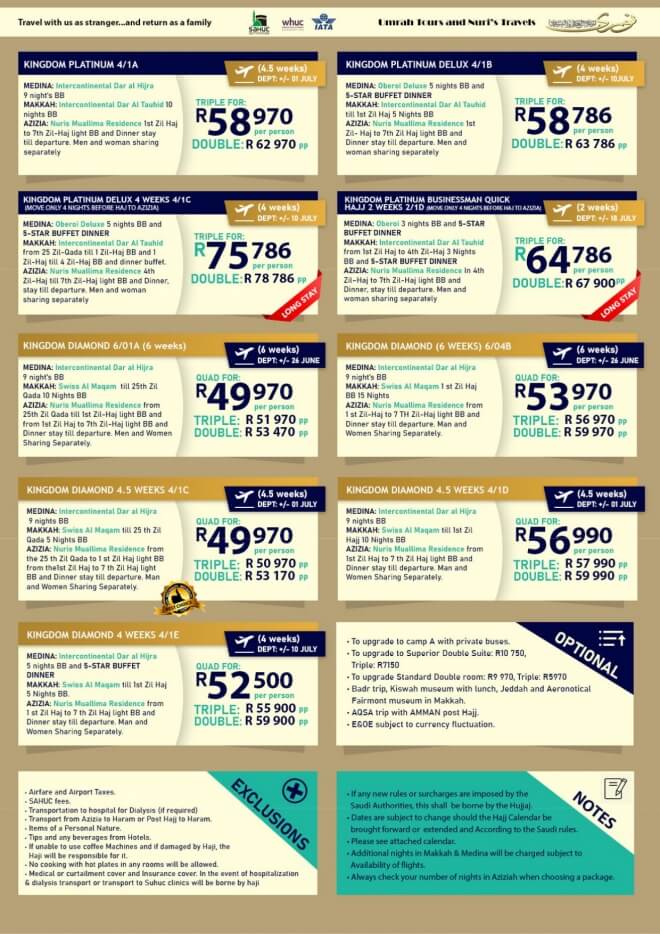 Disclaimer: Kindly check and confirm details with operators before booking. Package Information has been uploaded onto our website as received, and may have changed. Hotel Information has been sourced from websites like Google Maps, Wikimapia and Hotels.com. If any of the information is incorrect, kindly let us know via email: info@hajjumrahinfo.co.za - Shukran