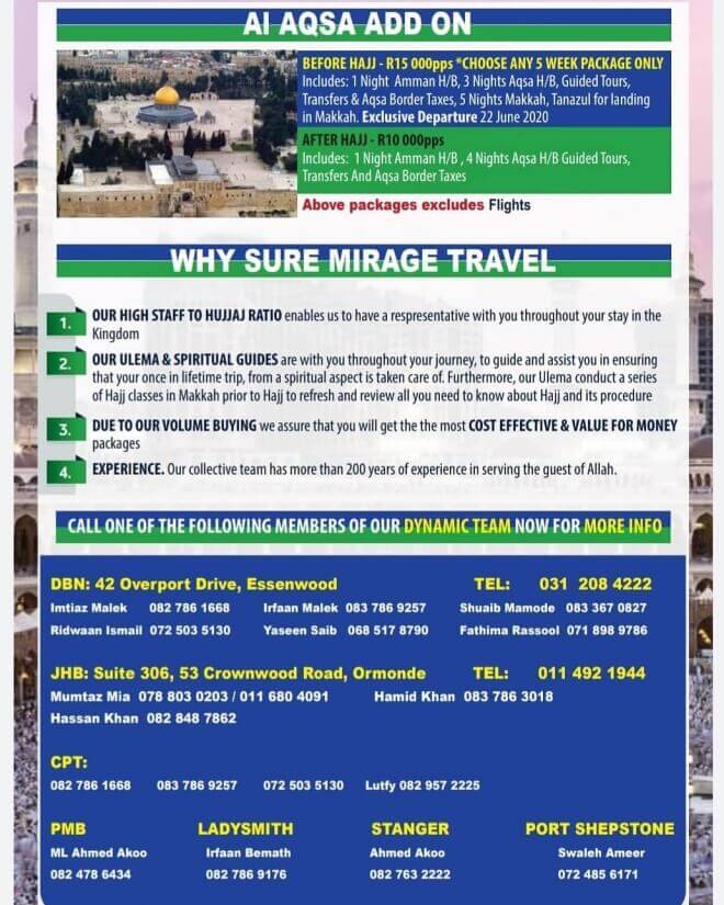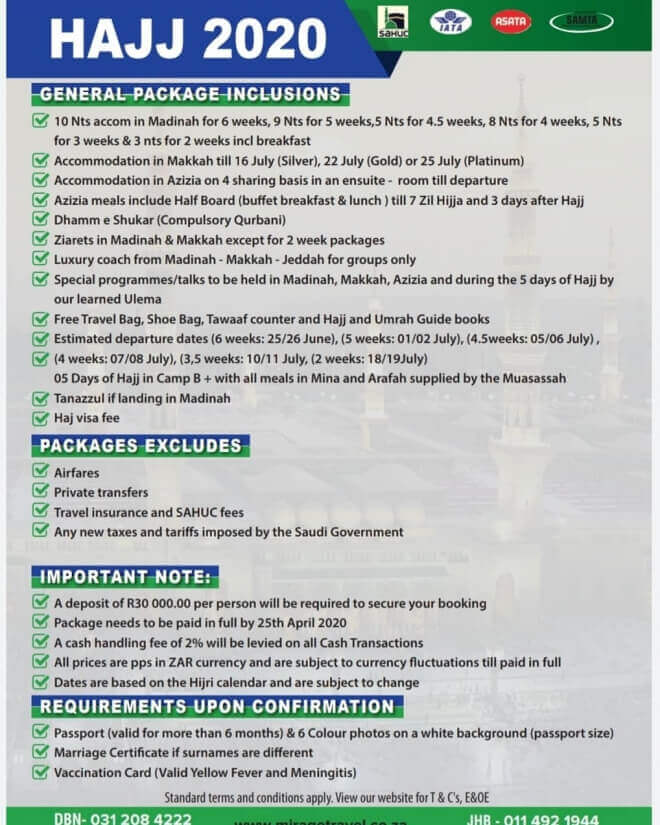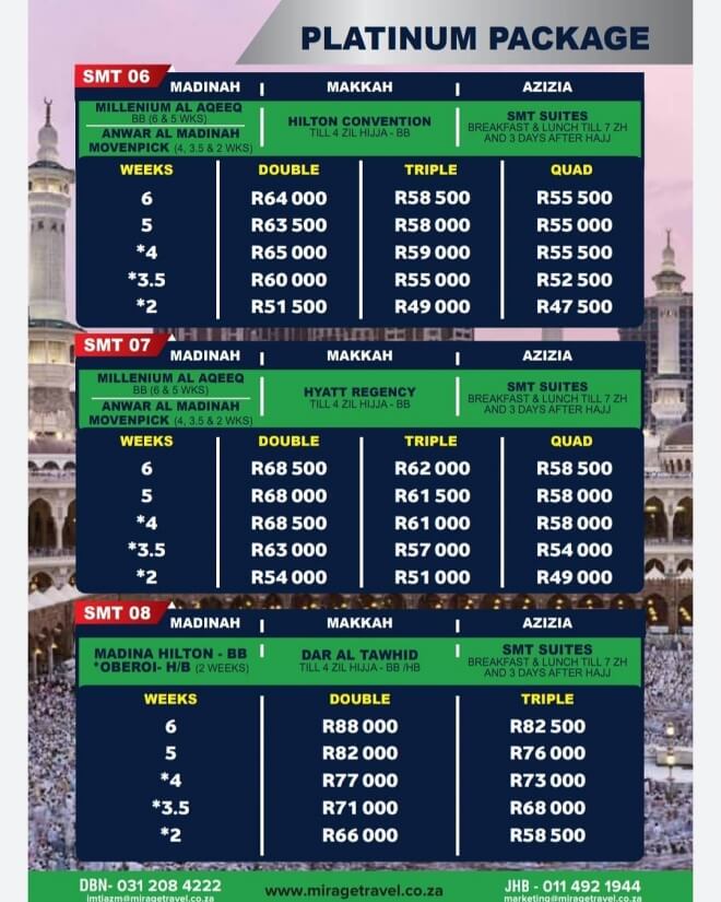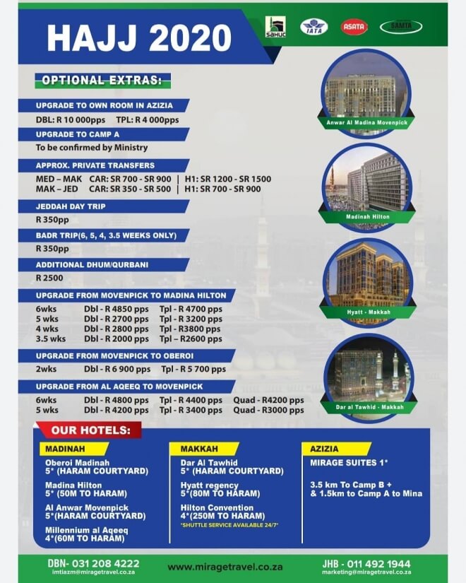 Disclaimer: Kindly check and confirm details with operators before booking. Package Information has been uploaded onto our website as received, and may have changed. Hotel Information has been sourced from websites like Google Maps, Wikimapia and Hotels.com. If any of the information is incorrect, kindly let us know via email: info@hajjumrahinfo.co.za - Shukran