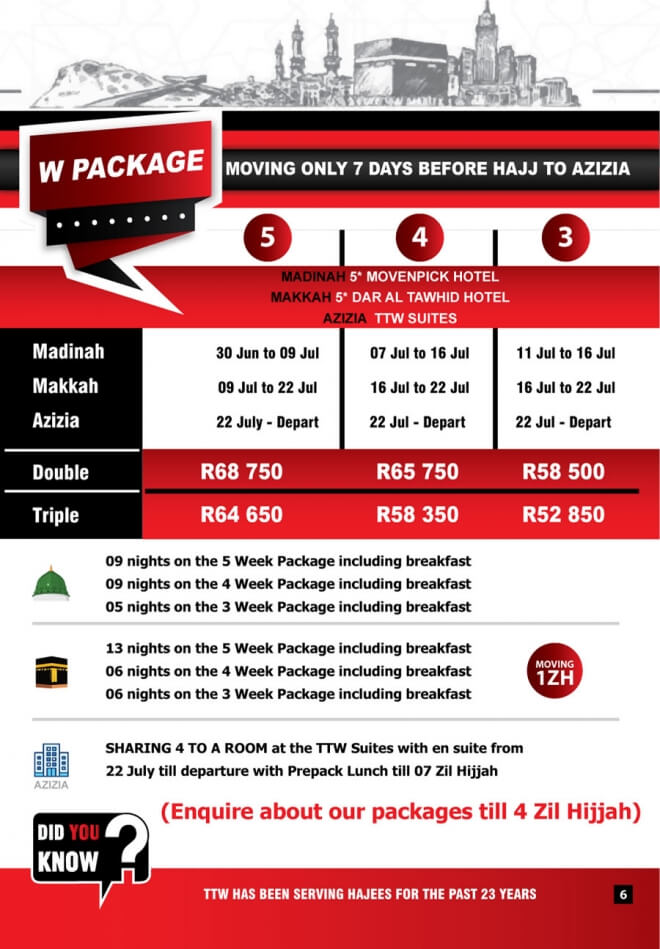 Disclaimer: Kindly check and confirm details with operators before booking. Package Information has been uploaded onto our website as received, and may have changed. Hotel Information has been sourced from websites like Google Maps, Wikimapia and Hotels.com. If any of the information is incorrect, kindly let us know via email: info@hajjumrahinfo.co.za - Shukran