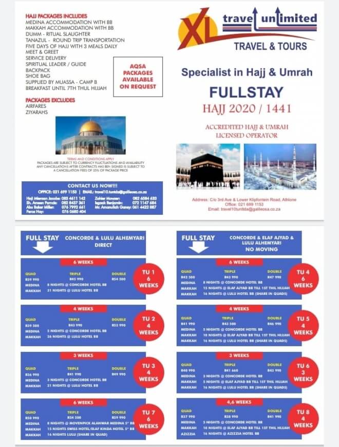 Disclaimer: Kindly check and confirm details with operators before booking. Package Information has been uploaded onto our website as received, and may have changed. Hotel Information has been sourced from websites like Google Maps, Wikimapia and Hotels.com. If any of the information is incorrect, kindly let us know via email: info@hajjumrahinfo.co.za - Shukran