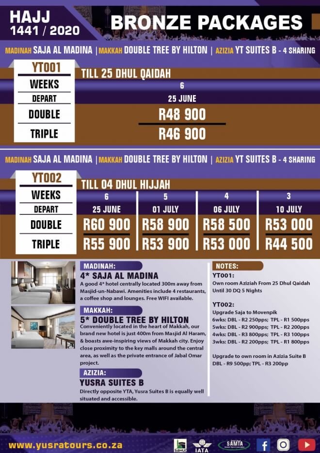 Disclaimer: Kindly check and confirm details with operators before booking. Package Information has been uploaded onto our website as received, and may have changed. Hotel Information has been sourced from websites like Google Maps, Wikimapia and Hotels.com. If any of the information is incorrect, kindly let us know via email: info@hajjumrahinfo.co.za - Shukran