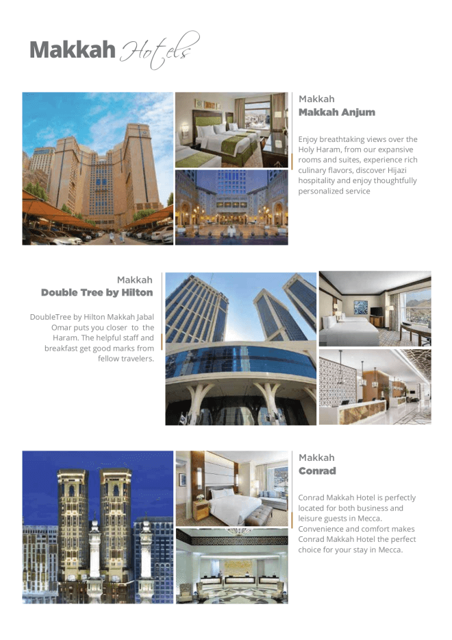 Note: Distance to Haram -In Makkah, distance to Haram is calculated as distance from hotel point to the Kaaba, and in Madina to the Green Dome.