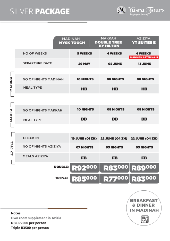 Yusra Tours - Silver Package - 4 Weeks (Madina after Hajj)