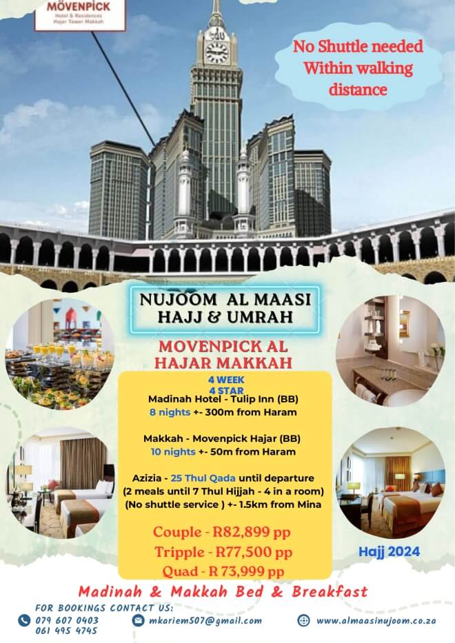 Disclaimer: Kindly check and confirm details with operators before booking. Package Information has been uploaded onto our website as received, and may have changed. Hotel Information has been sourced from websites like Google Maps, Wikimapia and Hotels.com. If any of the information is incorrect, kindly let us know via email: info@hajjumrahinfo.co.za - Shukran
