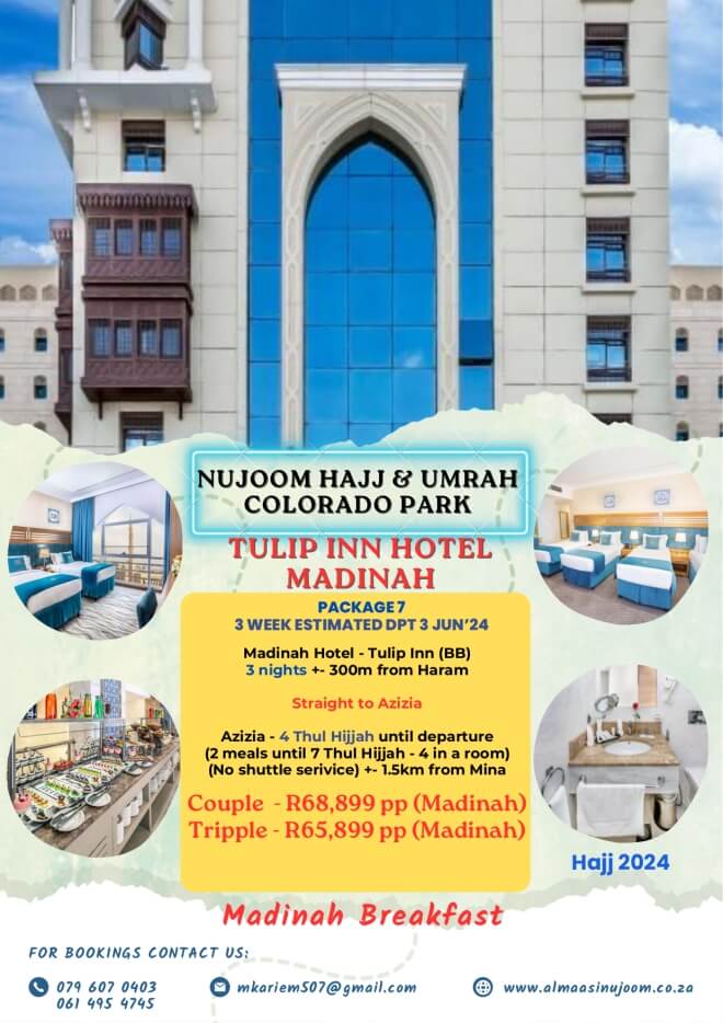 Disclaimer: Kindly check and confirm details with operators before booking. Package Information has been uploaded onto our website as received, and may have changed. Hotel Information has been sourced from websites like Google Maps, Wikimapia and Hotels.com. If any of the information is incorrect, kindly let us know via email: info@hajjumrahinfo.co.za - Shukran