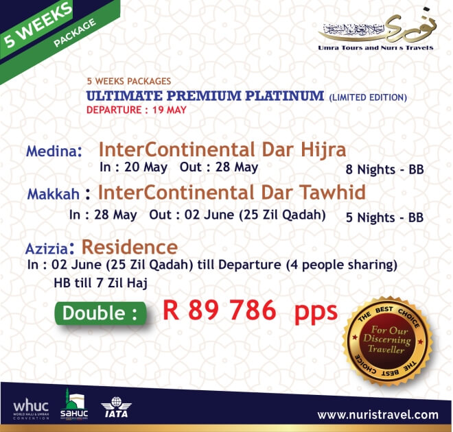 Disclaimer: Kindly check and confirm details with operators before booking. Package Information has been uploaded onto our website as received, and may have changed. Hotel Information has been sourced from websites like Google Maps, Wikimapia and Hotels.com. If any of the information is incorrect, kindly let us know via email: info@hajjumrahinfo.co.za - Shukran
