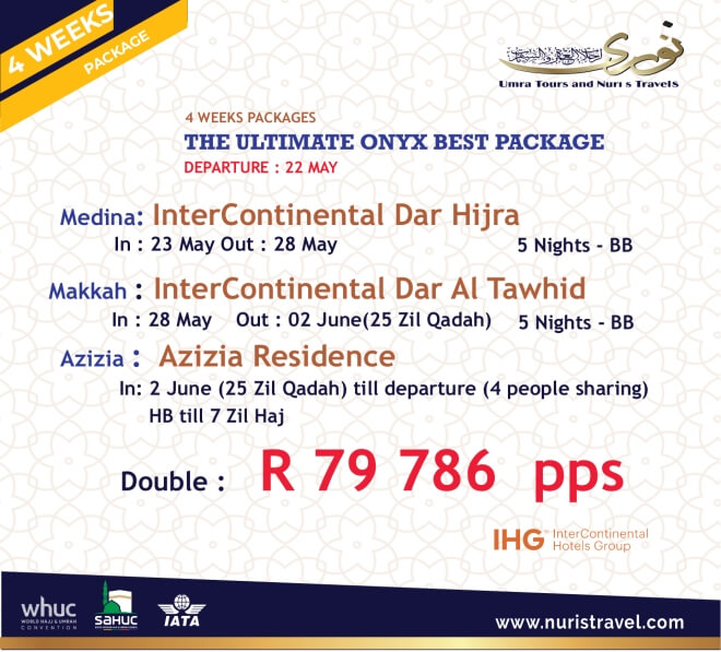 Disclaimer: Kindly check and confirm details with operators before booking. Package Information has been uploaded onto our website as received, and may have changed. Hotel Information has been sourced from websites like Google Maps, Wikimapia and Hotels.com. If any of the information is incorrect, kindly let us know via email: info@hajjumrahinfo.co.za - Shukran