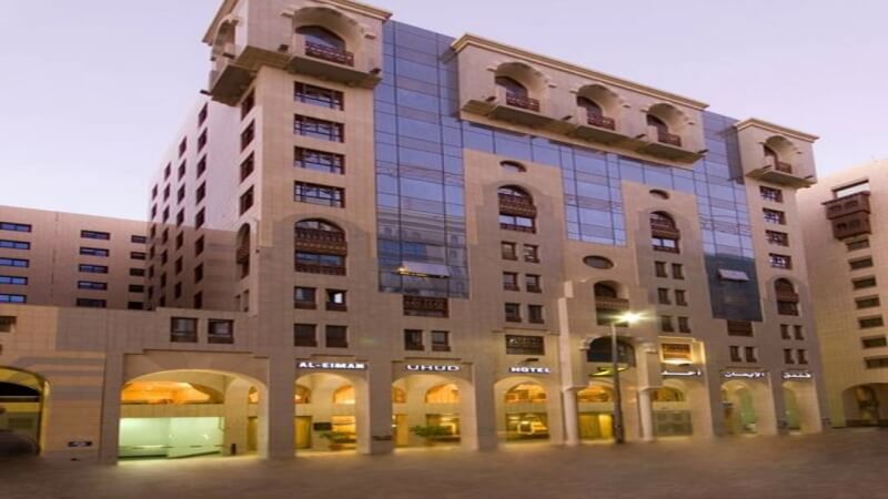 Al Eiman Uhud You are here: Home Madina Hotels Al Eiman Uhud Hotel Facilities: TV in Room Internet Access Hotel Map (Distance from Haram:835 meters) Note: Distance to Haram -In Makkah, distance to Haram is calculated as distance from hotel point to the Kaaba, and in Madina to the Green Dome.