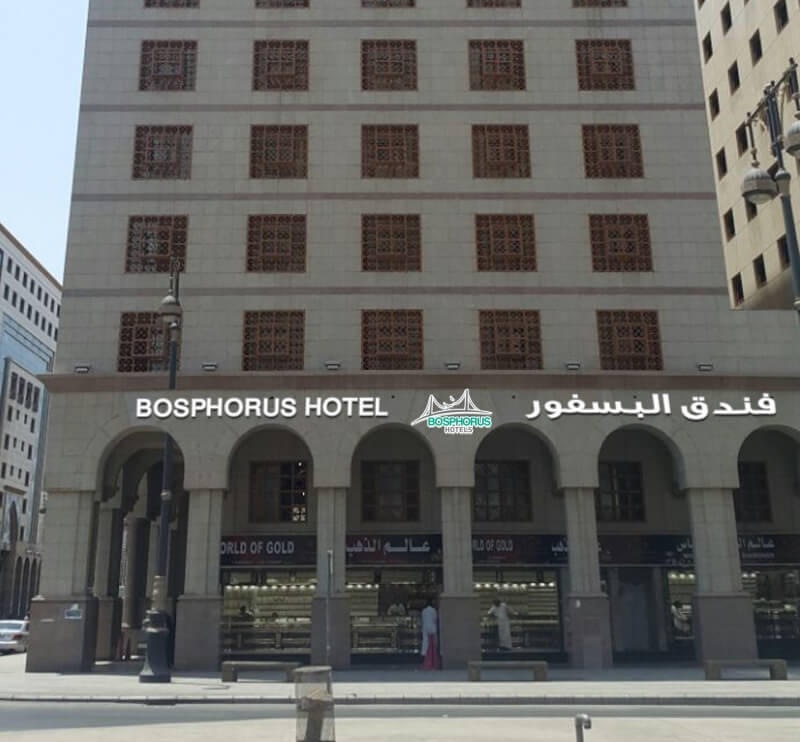 Bosphorous Madina You are here: Home Madina Hotels Bosphorous Madina Hotel Map (Distance from Haram:699 meters) Note: Distance to Haram -In Makkah, distance to Haram is calculated as distance from hotel point to the Kaaba, and in Madina to the Green Dome.