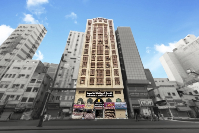 Tharawat Al Andalusia You are here: Home Makkah Hotels Tharawat Al Andalusia ‹ › Hotel Map (Distance from Haram:921 meters) Note: Distance to Haram -In Makkah, distance to Haram is calculated as distance from hotel point to the Kaaba, and in Madina to the Green Dome.