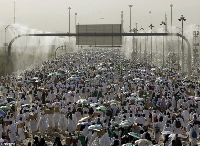 “Different methods must be adopted to protect Hajis and others from sunstroke including application of special creams, use of umbrellas and taking large amounts of water, covering heads and wearing light clothes,” he said, while stressing the need to use air-conditioners inside the tents in Mina and Arafat.