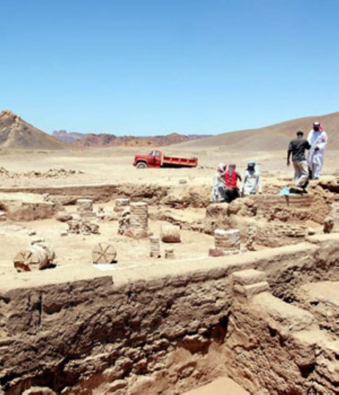 The excavation tasks were then assigned to King Saud University. In the first season of 2004, the archeological site, which consists of a group of scattered hills of varying heights that spread over an area of land surrounded by ancient walls that determine the area's size.