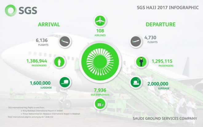 "Despite the increase in number of this year’s pilgrims and the tough operational conditions, we have managed to provide smooth handling services to all the pilgrims during the departure phase," said Omar Mohammed Najjar, CEO of SGS.