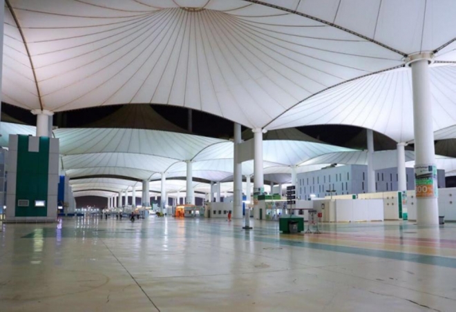 The terminal has 26 parking bays for the aircraft, 10 mobile bridges, two operation centers, 18 departure gates, 14 lounges for pilgrims, 254 travel counters, 143 passport processing counters.