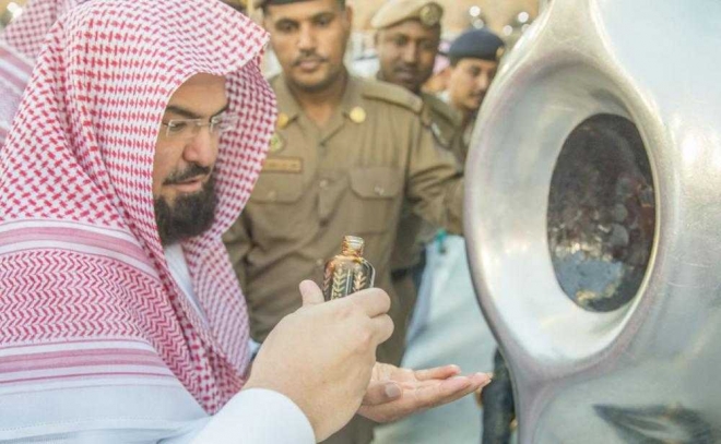 Officials from the General Presidency for Affairs of the Grand Mosque purify the area after every prayer with sanitizers, rose water, Oud, and specially-made purifiers.