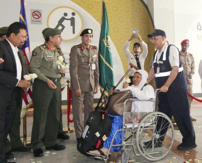 The arriving Malaysian pilgrims were received by Director General of Passports (Jawazat) Maj. Gen. Sulaiman Al-Yahya, Consul General of Malaysia in Jeddah Mohammed Ali Bin Salamat, Director General of King Abdulaziz International Airport Essam Fouad and other senior officials.