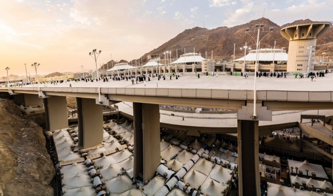 It is one of the largest projects implemented by King Salman to accommodate pilgrims in accordance with safety and security measures that allow it to absorb more than 2.6 million pilgrims annually, making it the largest tent city in the world. The tents are made of glass fabrics covered with Teflon, which is known for its high resistance to flammability and non-toxic gases; the tents are also air-conditioned and climate resistant.