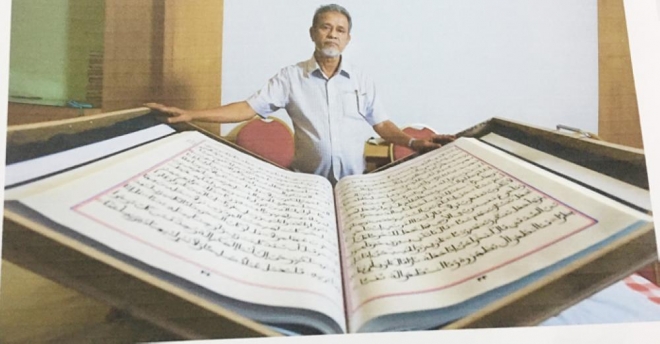 JEDDAH — A manuscript copy of the Holy Qur’an, claimed to be largest in the world, will soon be donated to the library of the Grand Mosque in Makkah. Mammed Chatholiparambil, a telecommunications engineer who has retired from Bharat Sanchar Nigam Limited (BSNL) — the state-owned telecommunications company of India — has completed the laborious task singlehandedly. It took six full years for him to fulfill the lifelong dream of penning down the entire verses of the holy book. He has also plans to apply for having an entry into the Guinness Book of World Records.