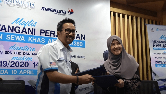 Amal, the Hajj and Umrah pilgrimage arm of Malaysia Airlines, and Andalusia Travel & Tours today signed an agreement to increase the number of Umrah charter flights to Madinah and Jeddah.