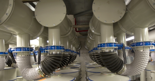 When the chilled water makes contact with hot air through the air handling units the temperature of the water rises, therefore, the water returns through the pipes in the tunnel to the central plant to be chilled and then pumped back into the pipes to return to the mosque in a continuous cycle.