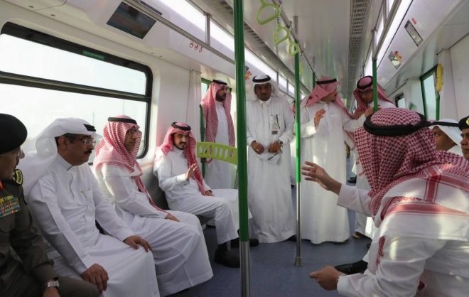 He took the train on a trip to make sure that all preparations are in place to transport about 350,000 pilgrims via 2,000 trips during the Haj.